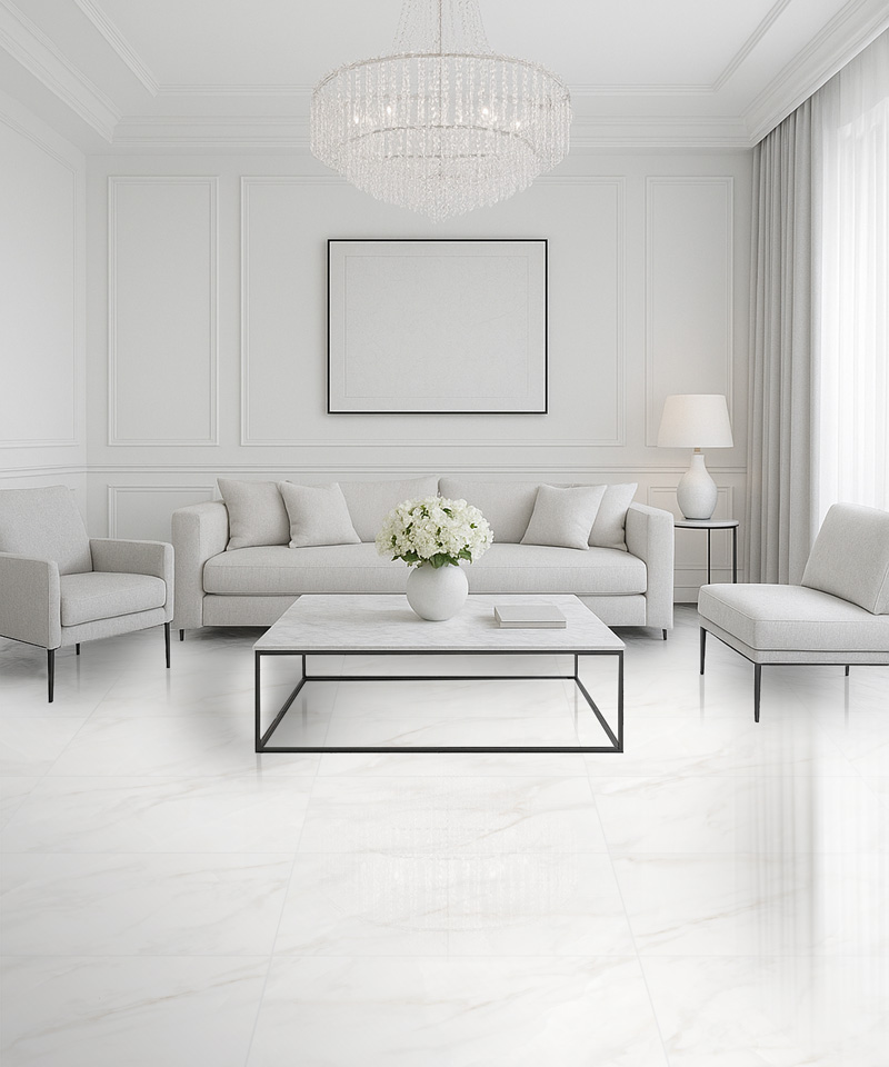 Bardiglio White is a muted soft white marble-look porcelain tile that offers a timeless and elegant aesthetic, perfect for both floors and walls. Subtle, muted grey veining flows gently across its smooth, polished surface, creating a natural sense of depth and sophistication without overpowering the space. Its understated tones evoke the beauty of real marble while maintaining the durability and easy maintenance of porcelain. The soft white palette complements a variety of design styles—from modern minimalism to classic luxury—making it an ideal choice for creating bright, airy interiors with a refined, serene ambiance.