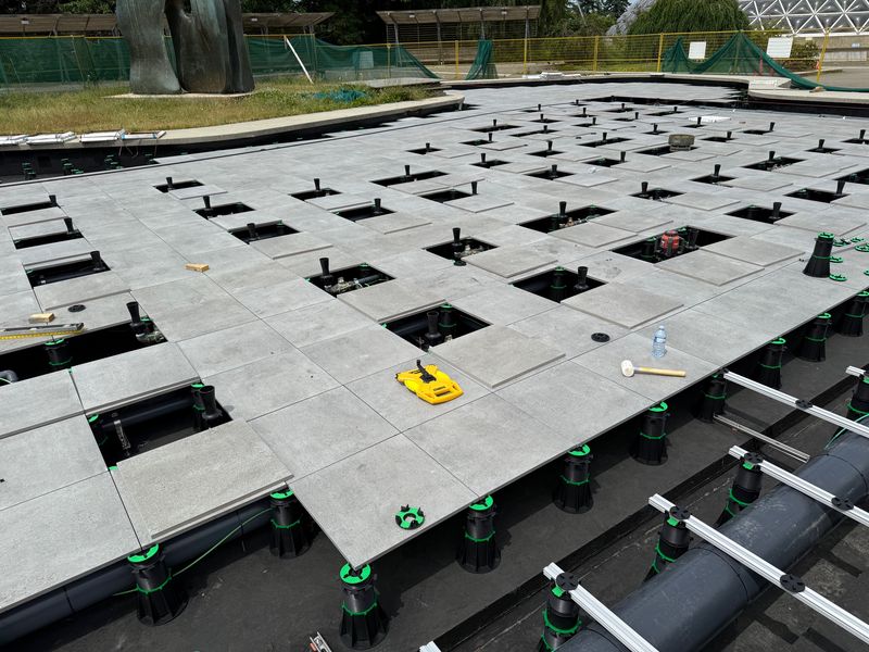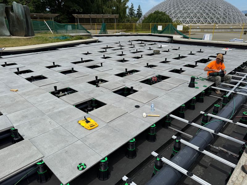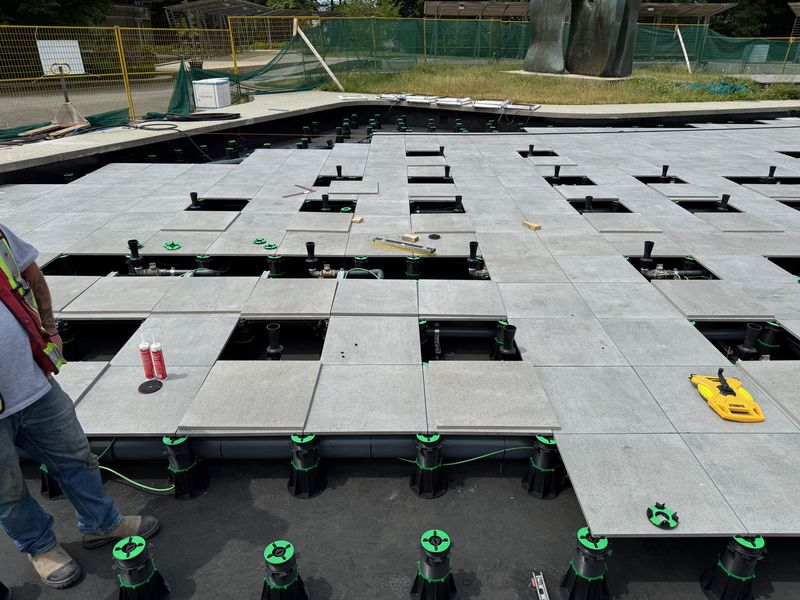 We are proud to unveil another amazing project using products from Enmon North America: the rebuild of the Dancing Fountain at Queen Elizabeth Park. Located at the highest point of Vancouver near the Bloedel Conservatory, the dancing fountain has been shut down for a few years. Recently, it was restarted by the Vancouver Board of Parks and Recreation after repairs were completed using Adjustable Plastic Pedestals and Outdoor 2cm Porcelain Paver Tiles from Enmon.